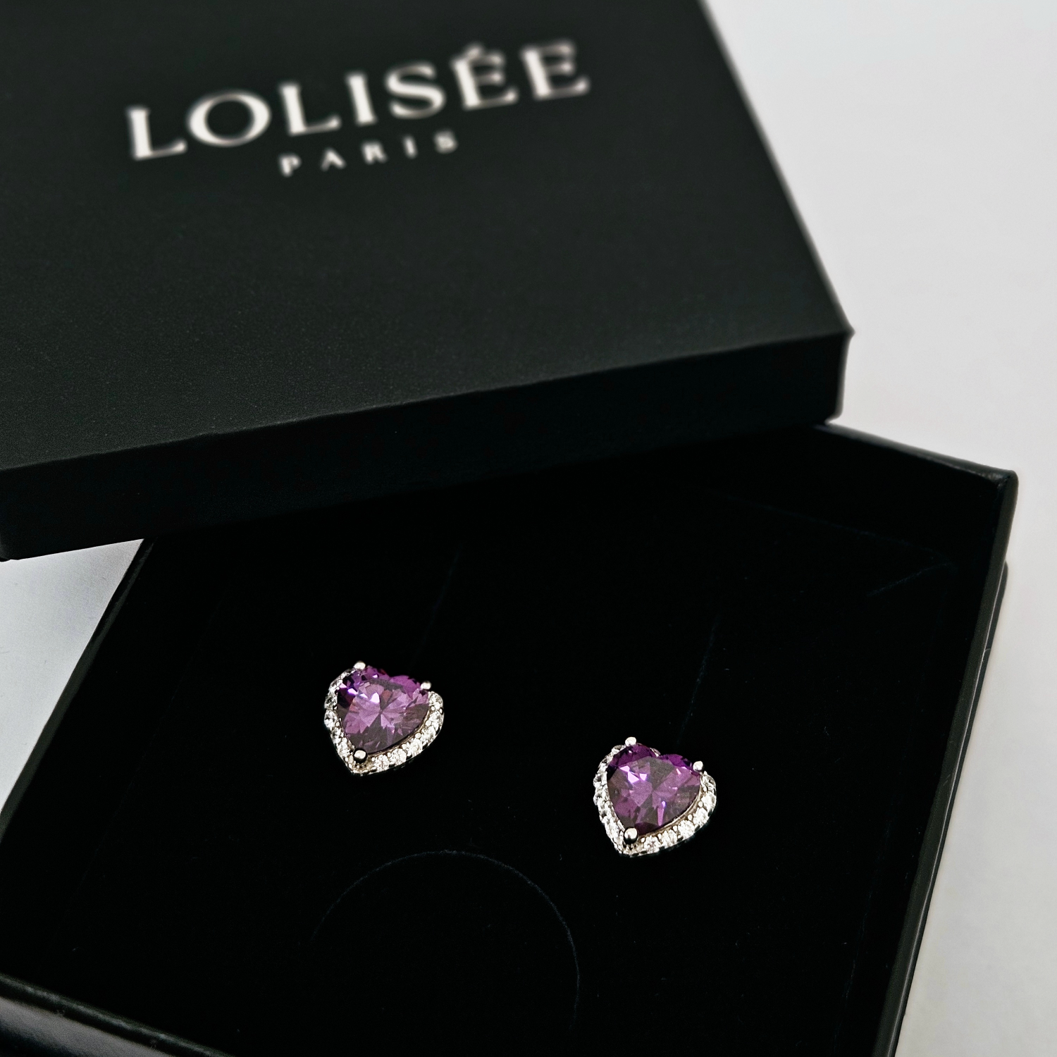 Brillez avec ces petits clous d’oreilles à coeurs violets — des bijoux symbole d’amour et de passion.